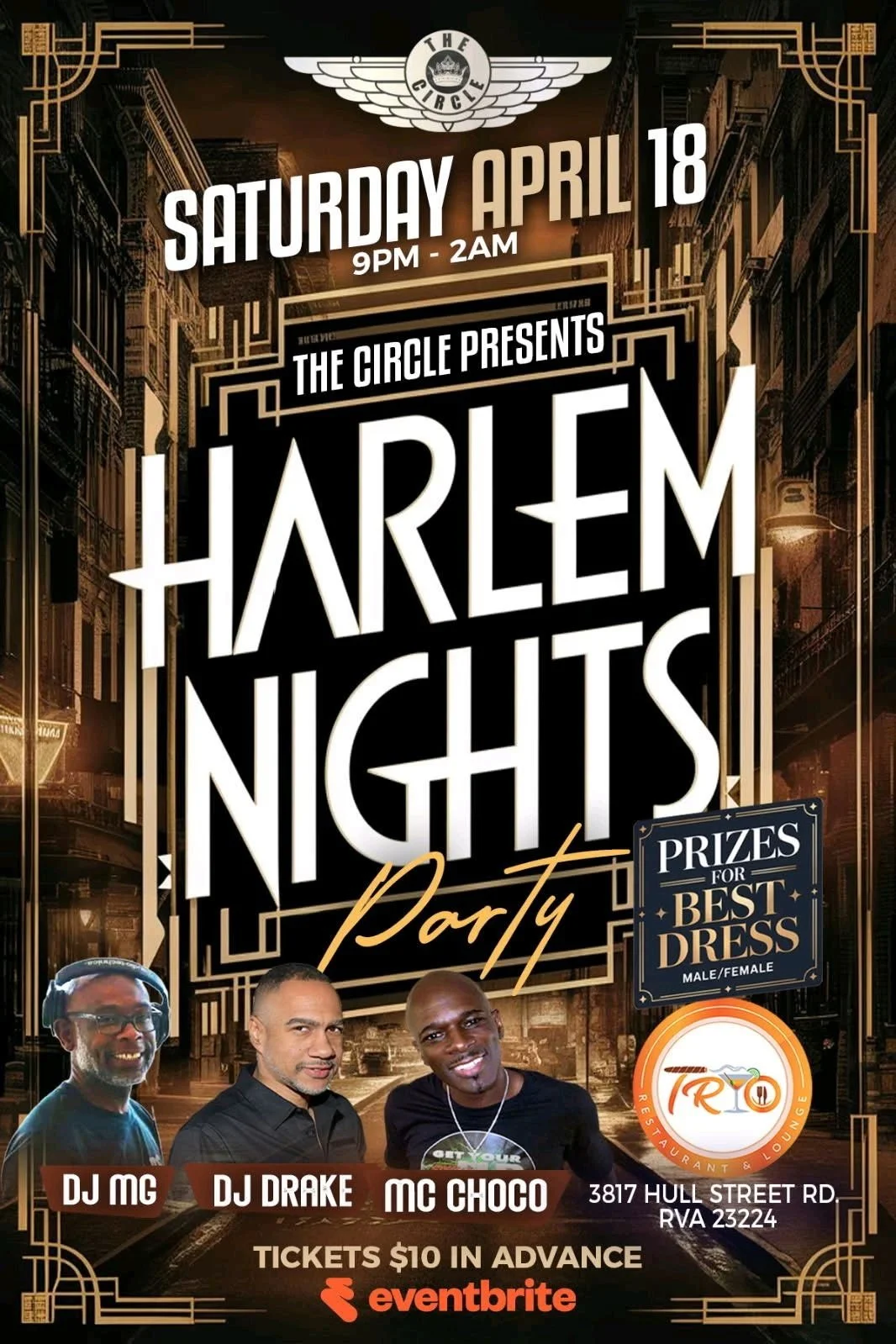Upcoming Events Harlem Nights PartySaturday, April 18th 9PM - 2PM3817 Hull Street RoadAdvance Tickets: $10 Get Tickets